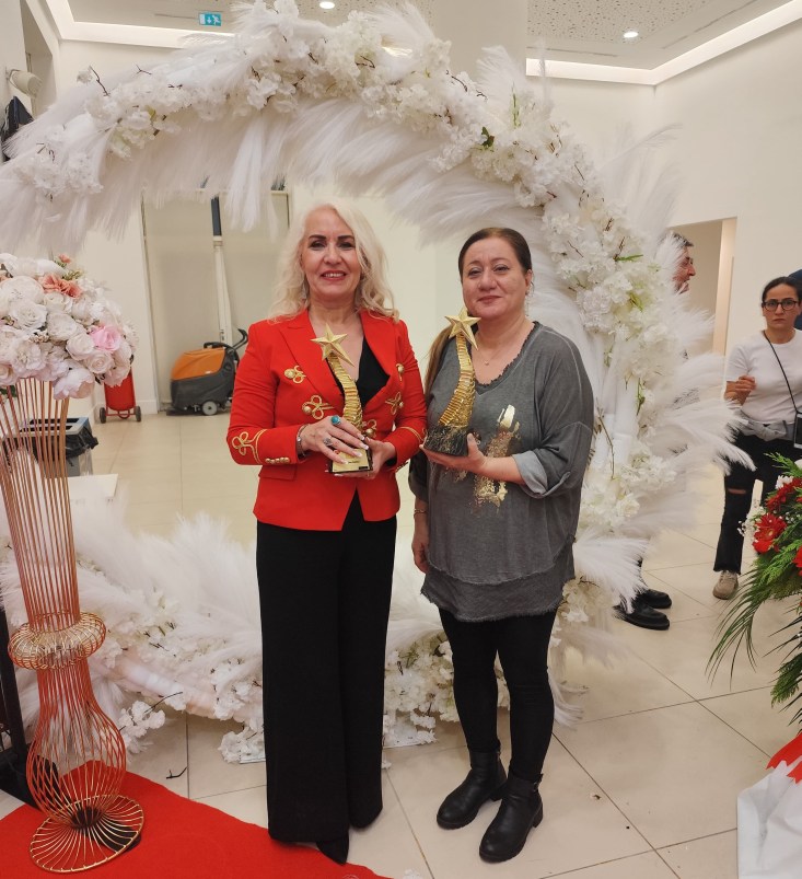 Bir başka sahnede Gönen Kadın Kooperatifi ödülünü Gönenli kadınlar ve Kerkük 'de yaşam mücadelesi veren Türk kadınları adına aldık