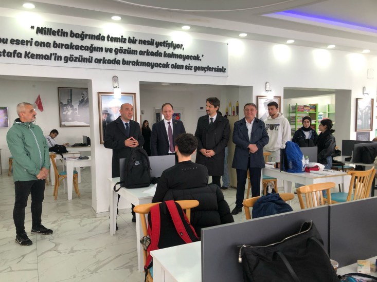 İlk olarak, Kapuz Plajı’nda Şehit Öğretmen Aybüke Yalçın Çalışma Salonu’nda ders çalışan öğrencilerle bir araya gelinerek başarı dilekleri iletildi.