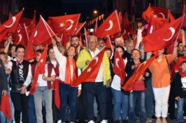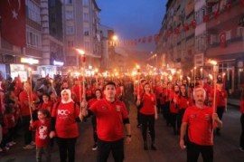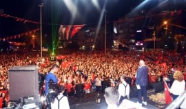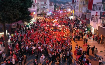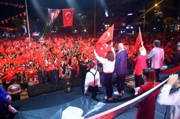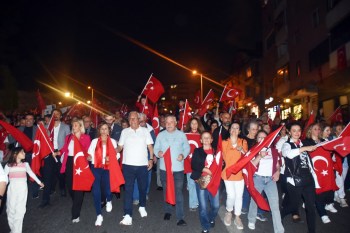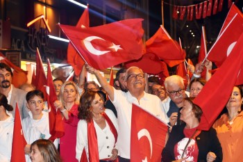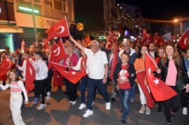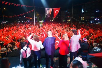Atatürk ve Cumhuriyet sevgisini hep bir ağızdan haykıran, omuz omuza Türk Bayrağını dalgalandıran halk, sokakları insan seline döndürdü.