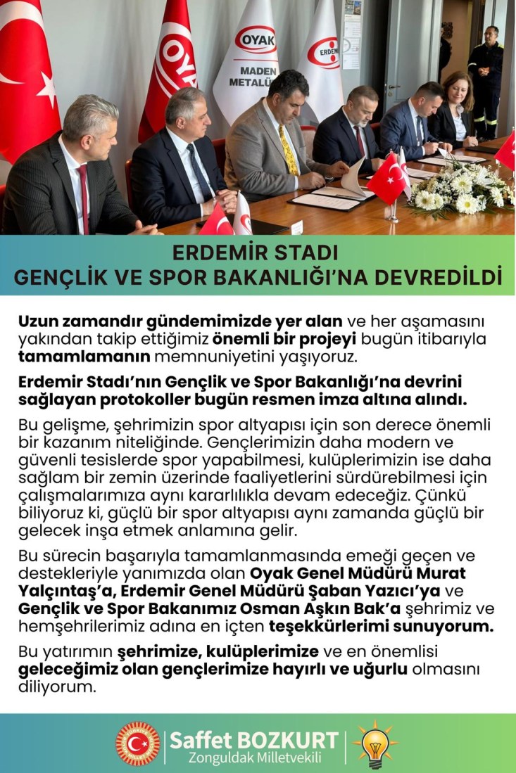 Bu gelişme, şehrimizin spor altyapısı için son derece önemli bir kazanım niteliğinde. Gençlerimizin daha modern ve güvenli tesislerde spor yapabilmesi, kulüplerimizin ise daha sağlam bir zemin üzerinde faaliyetlerini sürdürebilmesi için çalışmalarımıza aynı kararlılıkla devam edeceğiz. Çünkü biliyoruz ki, güçlü bir spor altyapısı aynı zamanda güçlü bir gelecek inşa etmek anlamına gelir.