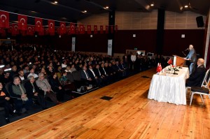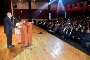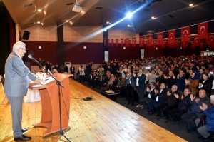 Şuanda belediyeye transfer olmak isteyen, devlet dairelerinden ve bir çok yerden müracaatlar var. Neden? Üç kuruş daha fazla alalım, orada huzur iyi, belediyede istikrar da çok iyi diye Ereğli Belediyesi’ne geçmeye çalışanlar var. Hatta Erdemir’de bile espri yapıyorlar ‘Belediye maaşları bizi geçmeye başladı’ diye. Benim yıllardan beri en büyük hayalim emek veren işçilerimizin haklarını zamanında ödemektir. Hiç kimsenin alın terinin karşılığını vermeden çalıştırmak ve verim almak mümkün değildir. Sivil hayatımdan beri, Erdemir’den beri, belediye başkanlığı yaptığım her dönemde alın terinin karşılığını vermek, onlara güler yüzlü davranmak yeri geldiğince hafifçe okşamak sonra da verim almak benim önceliğim olmuştur. Onun için aramızda büyük bir sevgi var karşılıklı. Siz benim Aşkım Ereğli’ye hizmet ediyorsunuz bende sizleri seviyorum, sizlere saygı duyuyorum. Belediyemizce şirket işçileri var. İnşallah onlara da kanun çıkarırlar ve kadroya alırız. O iş benim işim değil ama sendika yetkililerine büyük görev düşüyor burada.