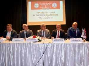 Konuşmaların ardından ek toplu sözleşme imzalandı. Belediye Başkanı Halil Posbıyık, işçinin ‘En büyük başkan bizim başkan’ tezahüratları eşliğinde salondan ayrıldı.