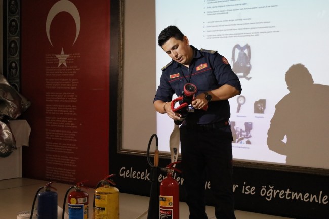 3 gün süren eğitimde İtfaiye ekibi, öğrencilere yangın ekibinin yangına müdahale esnasında kullanmak zorunda oldukları koruyucu ekipmanlar, sınıflarına göre yangın anında uygulanması gereken söndürme prensipleri ve yangın söndürmede kullanılan maddeler, ülkemizde itfaiyeciliğin gelişimi ve teşkilat şeması konuları hakkında bilgilendirmeler yaptı.