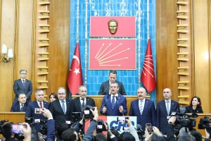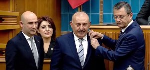 CHP Genel Başkanı Özgür Özel İYİ partiden CHP ye geçenlere rozetlerini taktı.