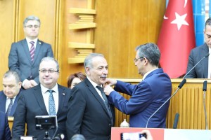 İYİ partiden CHP ye geçenlere rozetlerini taktı.