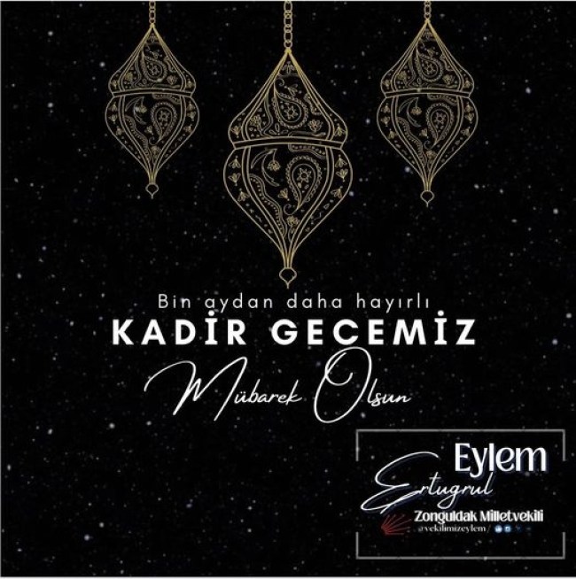 CHP Zonguldak Milletvekili Dr. Eylem Ertuğrul '' Ülkemizde barış ve kardeşliğe vesile olması temennisiyle Kadir Gecemiz mübarek olsun.''