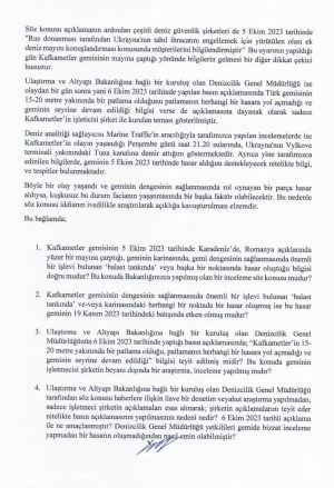Denizcilik Genel Müdürlüğü ise geminin mayına çarpmadığını ancak 15-20 metre yakınında patlama olduğunu açıklamıştı.