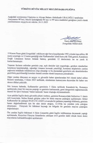 12 denizcimizi kaybettiğimiz bu olayla ilgili TBMM’ye yazılı soru önergesi verdim.