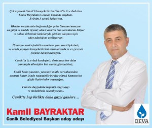 Seçim vaadini de açıklayan Bayraktar "Canik bizim yuvamız ,yuvamızı mutlu sorunlarından arınmış huzur içinde yaşanabilir bir ilçe olarak Samsun'un en gözde ilçelerinden birisi yapacağım.