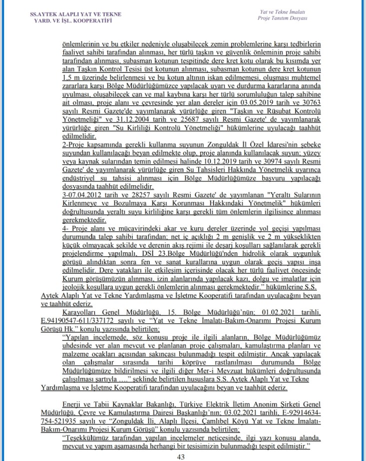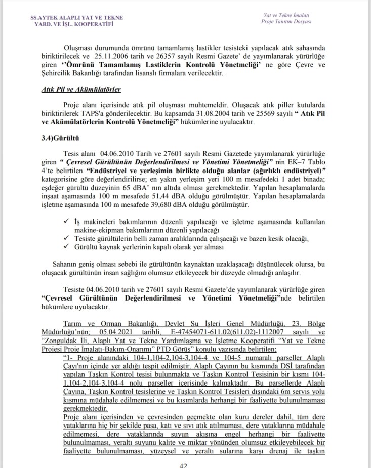 SS. AYTEK ALAPLI KOOP, 2024 Yılanda aynı proje ile, aynı yer aynı koordinatlar ile Zonguldak Valiliği, Çevre Şehircilik İklim Değişikliği İl Müdürlüğü'ne ÇED dosyası sundu. ÇED dosyası noktasına virgülüne kadar aynı dosyadır. DSİ kurum görüşlülerini ekte kamuoyunun bilgisine sunuyoruz. Tek değişiklik 1/1000 Ölçekli bölge yerleşimindeki haritada 2019 yılında dere yatağı olarak görünen, dere olarak bilinen sel taşkın alanı haritada değiştirilmiştir. Haritanın gerçek harita olduğu kuşkuludur.
