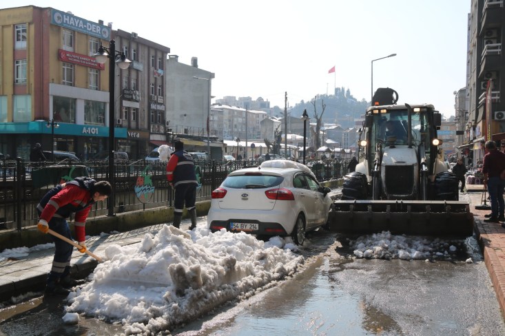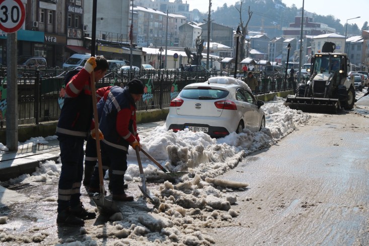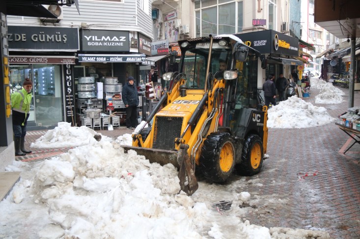 Cuma gününden itibaren 5 gün boyunca kenti etkisi altına alan yoğun kar yağışı, Ereğli’de yerini güneşe bıraktı. Kdz. Ereğli Belediye ekipleri yer yer 1 metreyi bulan kar kütlelerini kaldırma çalışmalarına dün geceden itibaren başladı. Esnafın yoğun olduğu kent merkezinde araç ve yaya yolunda oluşan kar yığınları iş makineleriyle kamyonlara yüklenip kaldırılıyor.