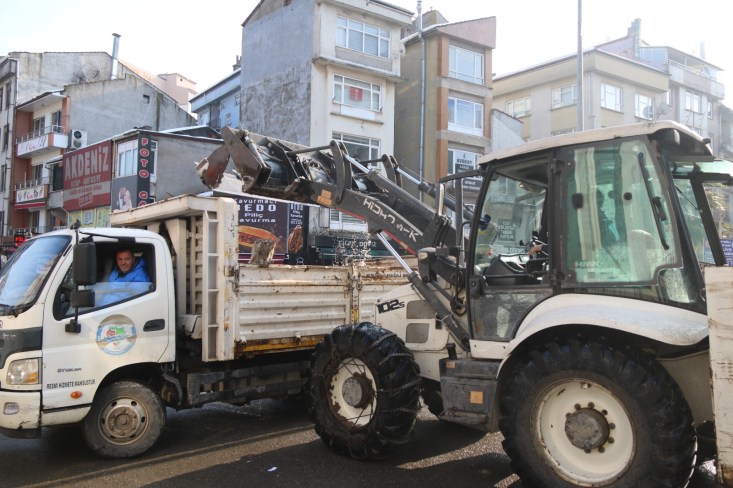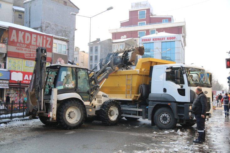 Kdz. Ereğli’de kar yağışının kesilmesinin ardından belediye ekipleri yol kenarlarında oluşan kar kütlelerini şehir merkezinden itibaren kaldırma çalışmalarına başladı.