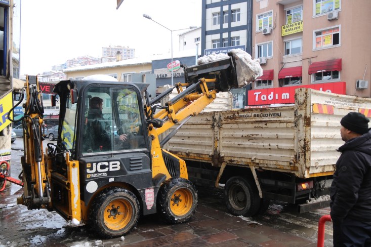 KDZ. EREĞLİ’DE, KAR KÜTLELERİ KALDIRILIYOR