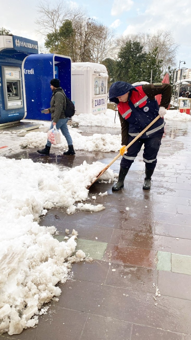 Ana arterlerden sonra ara yollarda kar küreme ve tuzlama çalışmaları devam ediyor, kaldırımlar ve yaya geçitleri yayalar için güvenli hale getiriliyor. İtfaiye tehlike arz eden kar ve buz sarkıtlarını temizliyor, çarşı merkezi kar kütlesinden arındırılıyor.