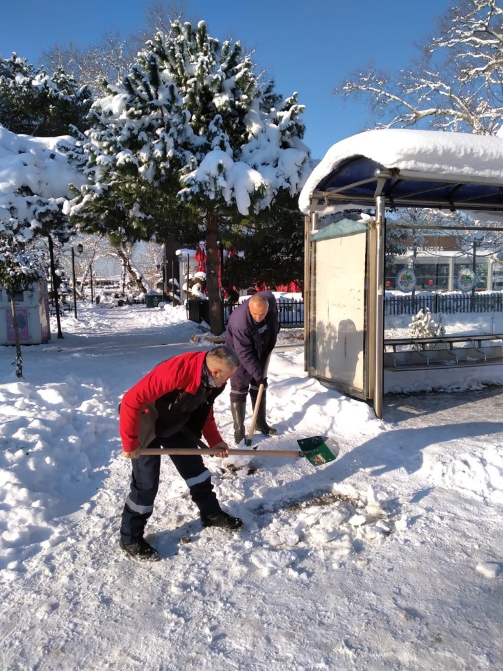 Fen İşleri Müdürlüğü’nün organizasyonunda Su ve Kanalizasyon, İtfaiye, Temizlik İşleri ve Zabıta başta olmak üzere bütün birimler, karla mücadele seferberliğini sürdürüyor. Ana arterlerden sonra ara yollarda kar küreme ve tuzlama çalışmaları devam ediyor, kaldırımlar ve yaya geçitleri yayalar için güvenli hale getiriliyor. İtfaiye tehlike arz eden kar ve buz sarkıtlarını temizliyor, çarşı merkezi kar kütlesinden arındırılıyor.