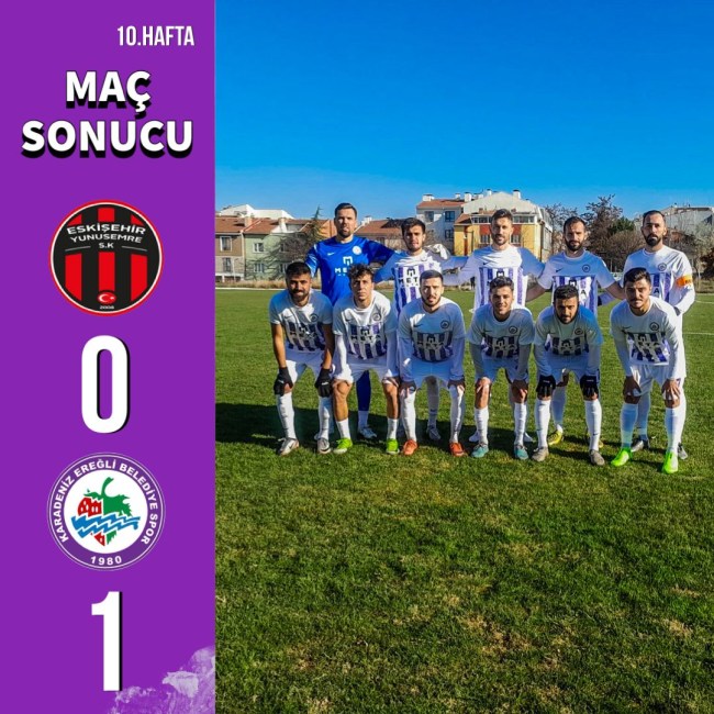 Bölgesel Amatör Ligi’nde mücadele eden temsilcimiz Kdz. Ereğli Belediyespor, 10.hafta maçında deplasmanda karşılaştığı Eskişehir Yunus Emre Spor’u 1-0’lık sonuç ile yenerek, sahadan galip ayrıldı.