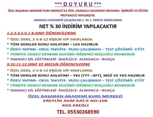 Kdz.Ereğli BAŞARAN AKADEMİ'den öğrencilere süper destek