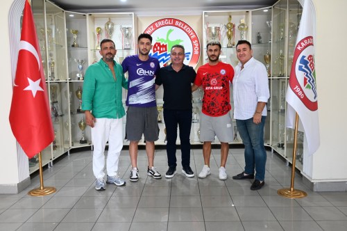 Kdz.Ereğli Belediyespor Kışla Spor Tesisleri'nde gerçekleştirilen imza törenine futbolcuların yanı sıra Kulüp 2.Başkanı Akın Katı, Yönetim Kurulu Üyeleri Tuğberk Posbıyık ve Recep Köksal ile Kdz.Ereğli Belediyespor Sportif Direktörü Ali Ünlü de katıldı.