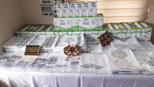 Beyaz kumaşlara baskı yaptıkları ürünleri dikip ütüleyip paketlediler, ayrıca aralarında topladıkları paralarla çocuklara süt aldılar ve bu yardımları Kdz Ereğli Halk Eğitim Merkezi Müdürü Metin Bozkurt’a teslim ettiler.