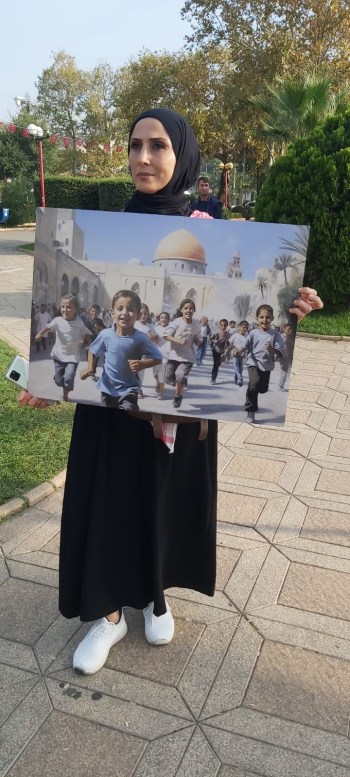 Sessiz protesto olarak anılan eylemde, ölenlerin ruhlarına Kur’an-Kerim okunurken, Gazze için dualar edildi, tespihler çekildi.