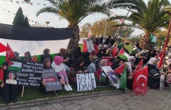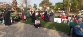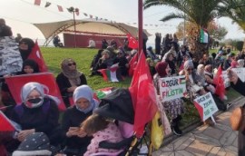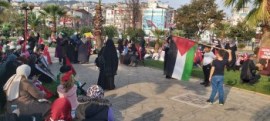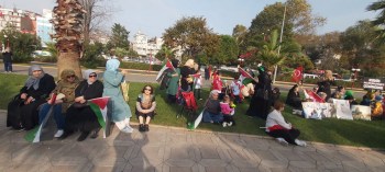 İsrail’in Gazze’de Filistinli binlerce çocuk ve kadını öldürmesini protesto eden ve içinde çeşitli Sivil Toplum Kuruluşlarının yer aldığı Kdz. Ereğli Ümmet Platformu kadınları, Amfi Tiyatro mevkiinde ellerinde pankartlar, dövizler, Filistin ve Türk bayraklarıyla oturma eylemi yaptı.
