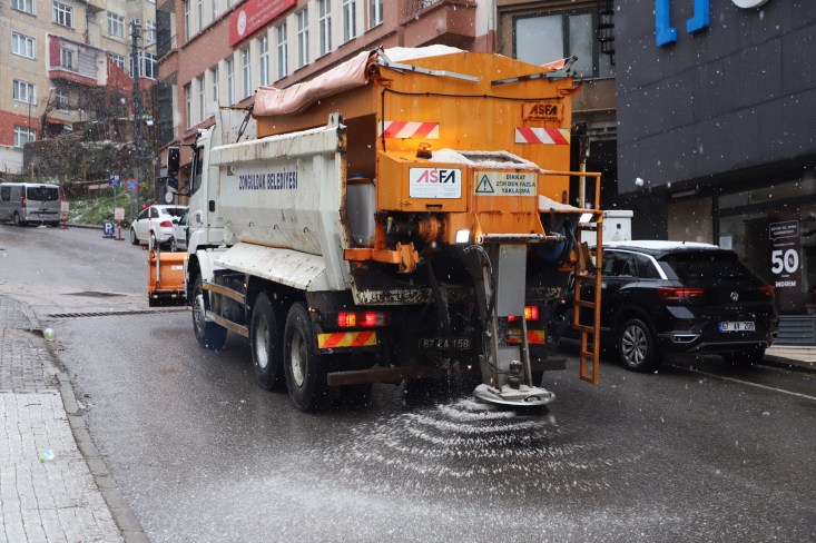 Yaya ve araç trafiğinin yoğun olduğu alanlarda da gerekli önlemler alınarak buzlanmaya karşı tuzlama çalışmaları gerçekleştiriliyor."