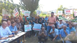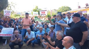 İl Çevre Müdürlüğü Yetkillleri Ege Doğa AŞ. Proje sormlusuna söz verince Toplantıya katılanlar protestolarla sözünü keserek konuşturmadılar.