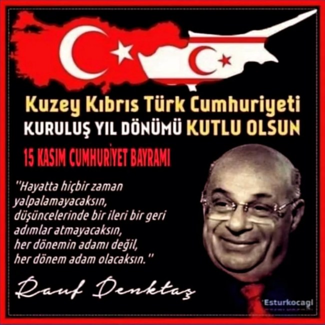 Kuzey Kıbrıs Türk Cumhuriyeti'nin (KKTC) 15 KASIM 1983'te İlanınının Yıldönümünü kutluyor, Kıbrıs Barış Harekatı döneminin Başbakanı merhum Bülent ECEVİT'i, KKTC'nin ilk Cumhurbaşkanı merhum Rauf DENKTAŞ'ı ve Türk Milletinin kahramanlığını bir kez daha dünya’ya gösteren Türk Silahlı Kuvvetlerini, Kıbrıslı Mücahitleri, aziz şehit ve gazilerimizi rahmet ve minnetle anıyoruz.