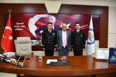 23 Nisan Ulusal Egemenlik ve Çocuk Bayramı kutlamaları kapsamında Ereğli’yi ziyaret eden Türk donanmasının savaş gemilerinden TCG Kdz. Ereğli gemisinin komutanları Kdm. Ütğm. Erkan Kolay ve Tğm. Kaan Görmüş Belediye Başkanı Halil Posbıyık’a nezaket ziyaretinde bulundular.