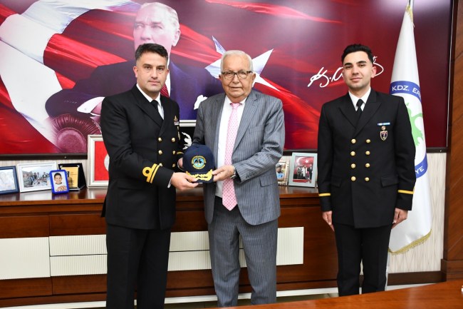 23 Nisan Ulusal Egemenlik ve Çocuk Bayramı dolayısıyla Ereğli’yi ziyaret eden TCG Kdz. Ereğli Savaş Gemisi komutanları, Belediye Başkanı Halil Posbıyık’a nezaket ziyaretinde bulundu.