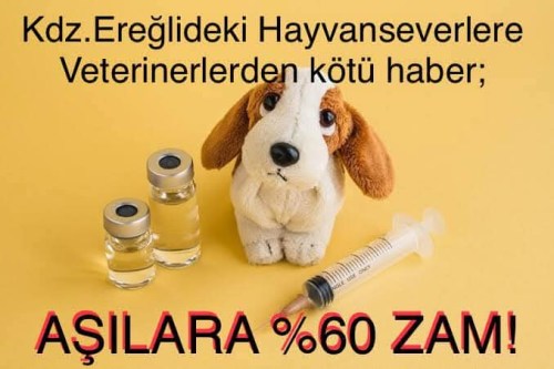 Yüzde 60 aşı zammını çok bulan hayvanseverler;” Veteriner Hekimlerin aşılara %60 zam yapmasına dur diyecek kimse yokmu? Bu aşıları Veterinerler toplu alım yaptıkları İçin 350 TL gibi fiyatlara alıyorlar. 350-400 TL maliyeti olan aşının 1.500 TL gibi fahiş fiyattan vurulması hayvanseverleri ciddi sıkıntıya sokacak. Bu fiyat artışı acımasızlık değİl mi? Normalde yılda iç ve dış parazit aşısı 6 kez, diğer aşıyı da 3 kez yaptırmamız lazım. Bu fiyatlarla yılda 1 aşıyı zor yaptırırız. Veterinerler para kazanacağız derken, bu durumu hiç düşünmüyorlar mı? Bu fahiş fiyat haksızlık. Artık hayvanlarımıza aşı yaptırmayacak duruma geldik. Ne yapalım yani hayvanlarımıza aşıları dışarıdan temin edip kendimiz mi vuralım. Konuyu Bakanlığa ve Kdz.Ereğli Belediyesine de ileteceğiz. Madem özel Veteriner Hekimler böyle fahiş fiyat yapıyor, Kdz.Ereğli Veterinerlik Müdürlüğü hayvanlarımızın aşılarını daha ucuz fiyattan yapsın. Hem Belediye kazansın, hemde hayvanseverler mağdur olmasın. Bu konuda Belediyeden de duyarlılık bekliyoruz.” diye tepkilerini dile getirdiler.