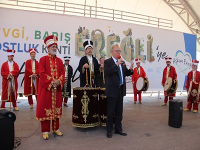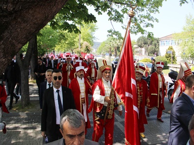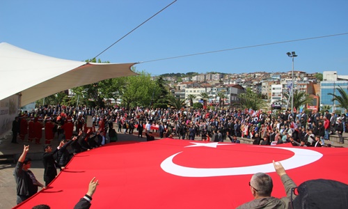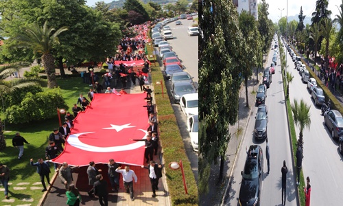 Kalabalık daha sonra mehter takımı ile birlikte Amfi Tiyatro önüne kadar yürüdü. Yürüyüş sırasında Kdz. Ereğli Ülkü Ocakları’na üye gençler dev Türk Bayrağı ve MHP bayrağı açarak sloganlar attı.