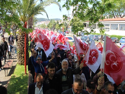 MHP Kdz. Ereğli İlçe Teşkilatı tarafından düzenlenen mehter ekibi eşliğindeki yürüyüşe binlerce kişi katıldı. Kdz. Ereğli’de MHP tarihinde ilk kez böyle bir kalabalık bir araya gelirken vatandaşlar “MHP işi bitirmiş, milletvekilliği hayırlı olsun” yorumları yaptı.