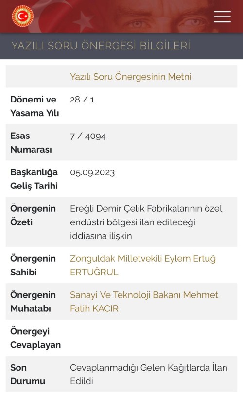 28 Ağustos 2023 tarihinde kamuoyuna OYAK iştiraki olan Ereğli Demir Çelik Fabrikalarının Özel Endüstri Bölgesi ilan edileceği, bu hususta son aşamaya gelindiği ifade edilmişti. Bu konuyu meclis gündemine taşıdık. Benim bu konuya tepkim yeni de değil. Bu iddialar önceki yıllarda da ortaya atıldı. Kamuoyu tepkisi ile ertelene ertelene bu günlere getirdik. O dönemde ilçe başkanıydım. Erdemir’in Özel Endüstri Bölgesi kapsamına alınma konusunda iktidar partisinin Zonguldak Milletvekillerinin, Ereğli halkından habersiz biçimde pazarlıklar içinde olmasını, bu kent halkına yapılmış bir saygısızlık olarak kabul ettiğimi söylemiştim yine söylüyorum. Bizler bir konuyla ilgili çalışmayı, söylenecek sözleri, yapılacak görüşmeleri titizlikle temsil ettiğimiz yörenin hassasiyetlerine göre yürütürken birileri kapalı kapılar ardında kendi menfaatlerine göre pazarlıklarını yürütüyor.