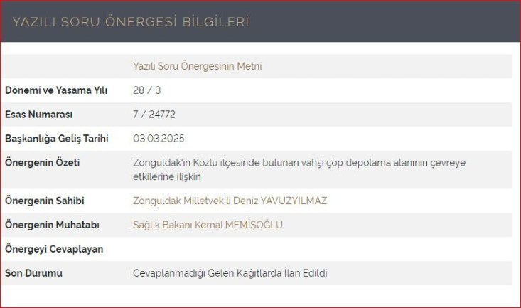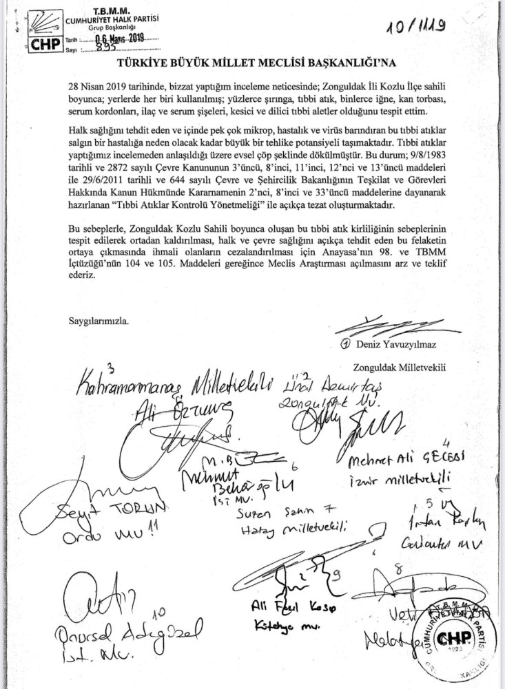 Konunun halk sağlığı boyutuna ilişkin sorularımız Sağlık Bakanlığı tarafından yanıtsız bırakılıyor. Her deniz dalgasıyla evsel ve tıbbi atıklarla dolu çöp yığınları Zonguldak’ın sahillerine yayılırken Sağlık Bakanlığı sessiz kalıyor. Son soru önergemize aylar geçmesine rağmen tek bir yanıt dahi verilmedi. Vatandaş sağlığından oluyor, Bakanlık ise üç maymunu oynuyor.