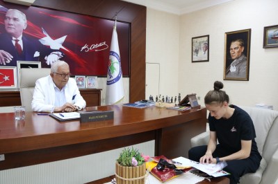Milli gururumuz Ebru Topçu Başkan Posbıyık'ı ziyaret etti.