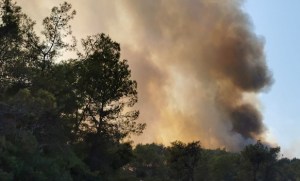 Başkan Tokat, “Burası Halep çamlarının yoğun olarak bulunduğu bir bölge. Maalesef otlar çok kuru. Havadan THK uçakları ve helikopterler, karadan da arazözler ve iş makineleri müdahale ediyor.