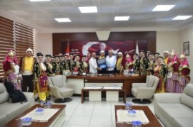 Halk dansları gruplarına kentimizi ve festivali hatırlatacak çeşitli hediyeler takdim ettik. Kendi ülkelerine özgü hediyeler de getirdiler. Onları hep birlikte kentimizde en iyi şekilde misafir edeceğiz.
