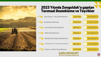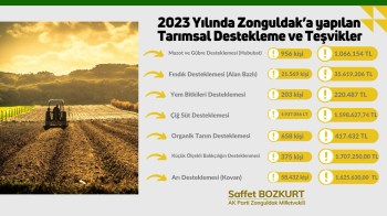 Tarım ve Orman bakanlığımızın 2023 yılında Zonguldak'a yapılan Tarımsal Destekleme ve Teşvikleri.