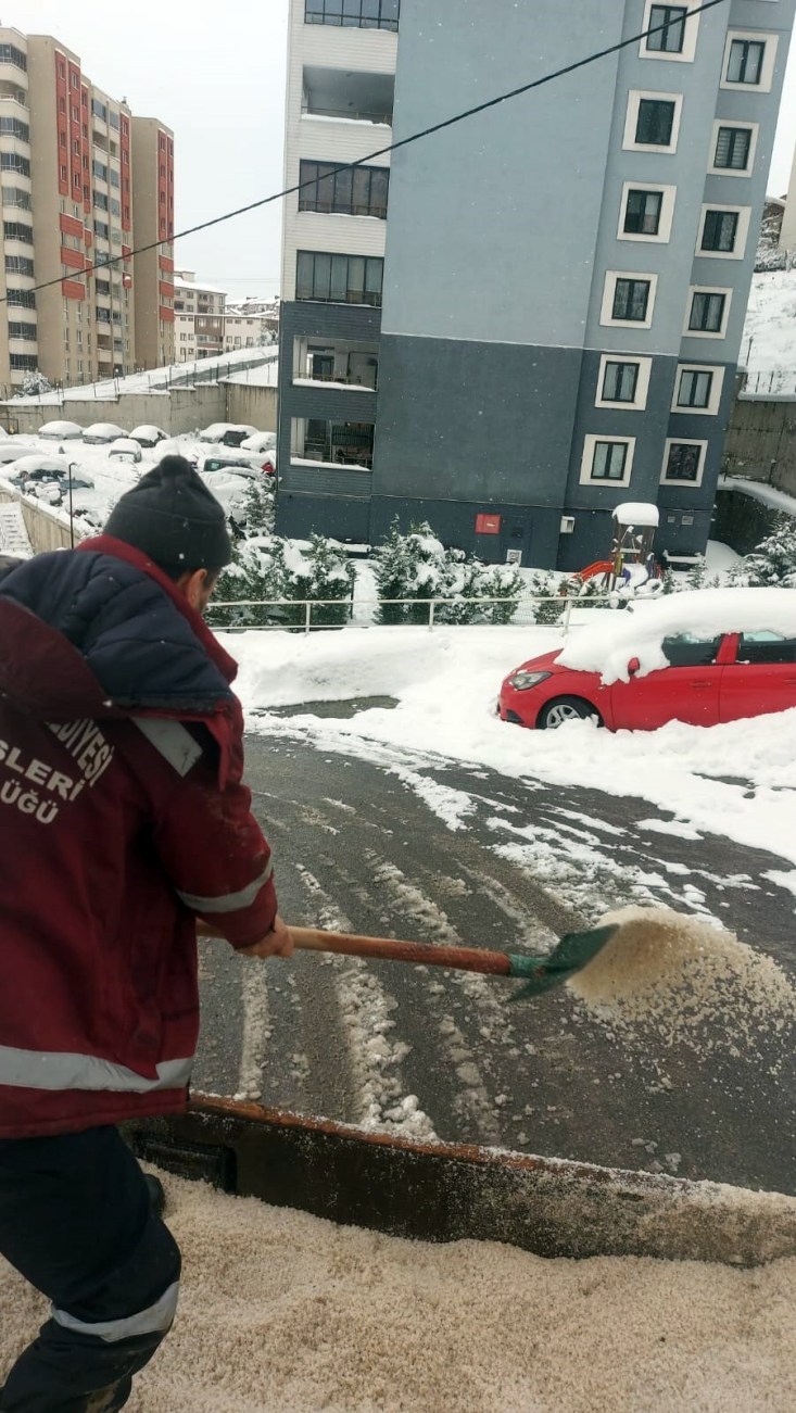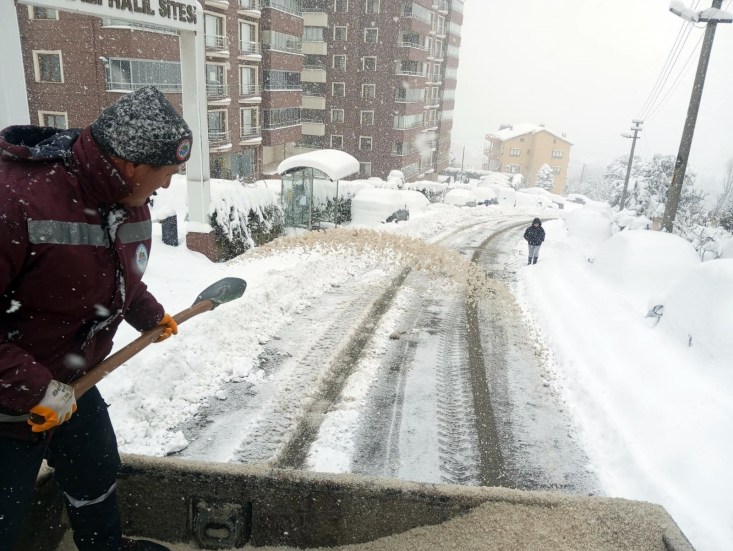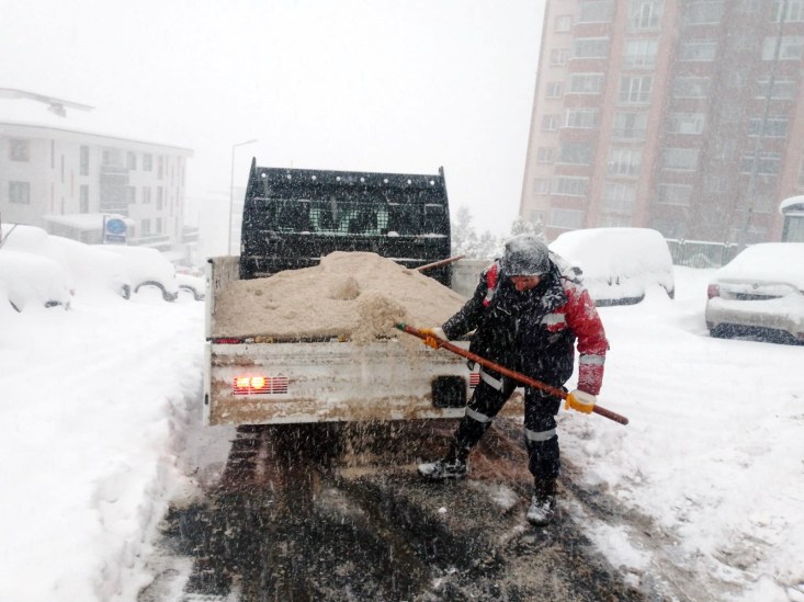 Fen İşleri Müdürlüğü’nün organizasyonunda Su ve Kanalizasyon, İtfaiye, Temizlik İşleri ve Zabıta başta olmak üzere bütün birimler, araç, ekipman ve personeliyle seferber olmuş durumda. 24 saat esasına göre yollardan kar küreniyor, tuzlanıyor, yaya kaldırımları temizleniyor.