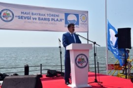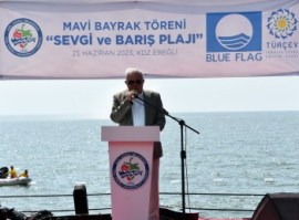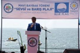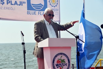 “Ülkemizin bir cennet köşesinde bulunmaktan çok mutluyum. Mavi Bayrak uygulamasını 30 yıl önce bakan olduğum dönemde başlattık. Bu bayrak bir ülkenin sadece sularının değil aynı zamanda yeşilinde, insanlarının çevreye, ekolojiye verdiği önem açısından önemli bir simgedir. Evet şu anda bu güzel plajımızda mavi bayrak dalgalandıracağız. Bir plaja, hem ulusal, hem uluslararası denetimlerden geçerek 33 ayrı kriteri var. Bu kriterleri kazanmak epey alın teri istiyor. Bu konuda Kdz. Ereğli Belediye Başkanı Halil Posbıyık’ı ve çalışma arkadaşlarını kutluyorum. 4 yıldır sürdürdükleri çalışma sonunda Mavi Bayrağı kazandılar.