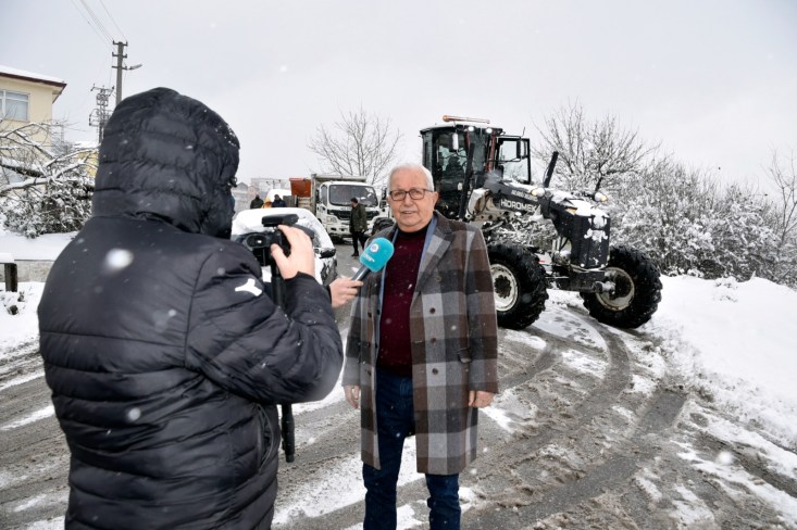 Karla mücadele çalışmalarını sahada denetleyen Belediye Başkanı Halil Posbıyık, “Tedbirlerimizi önceden aldık. Tüm ekiplerimiz sabaha kadar vardiyalı olarak çalışıyorlar.''