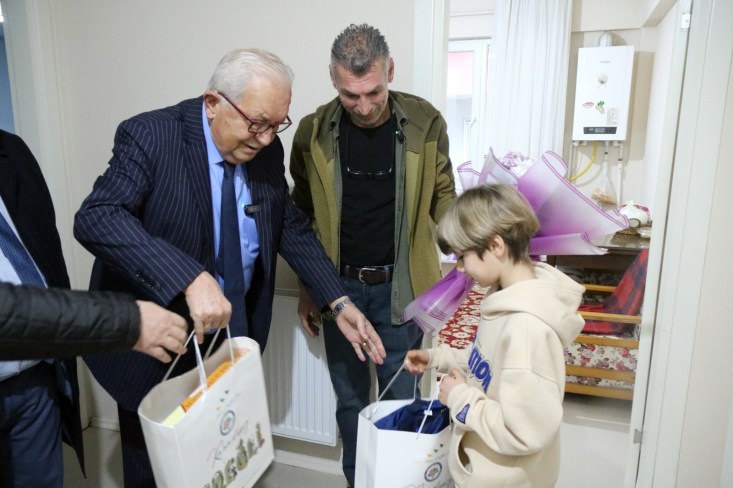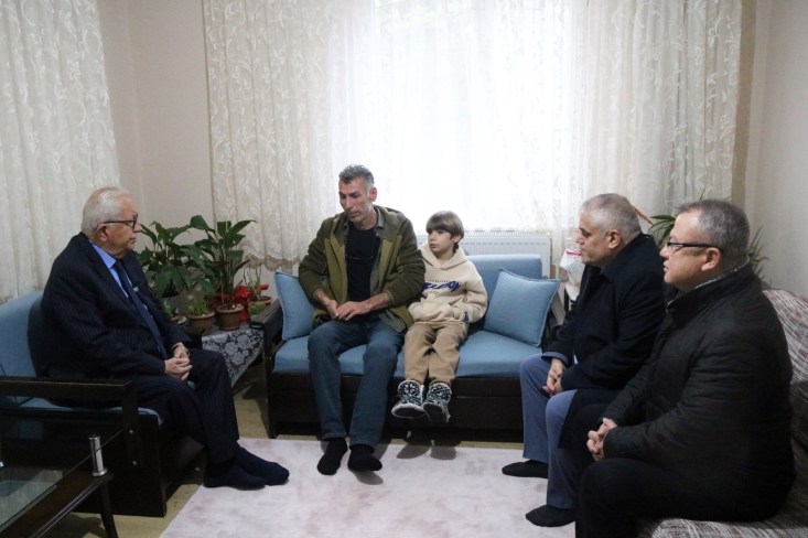 Karadeniz Ereğli belediye başkanı Halil Posbıyık depremzede aileyi evinde ziyaret etti .