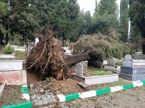 Bu felakette canımızı yakan, moralimizi bozan diğer bir konuda mezarlıklarımızda oluşan zararlar oldu. Kestaneci ve Şehir Mezarlığında bir çok ağaç yıkıldı, mezarlar yerlerinden oynadı. Felaketin hemen arkasından tüm birimlerin desteğiyle Mezarlıklar müdürlüğünün başlattığı çalışma sonunda yıkılan 250 ağaç kaldırıldı, devrilen kökleri yerlerinden söküldü, zarar gören 350 mezar belediye desteği ve aile yakınlarının işbirliğiyle yeniden onarıldı.