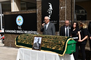 Kdz. Ereğli Belediye Başkanı Halil Posbıyık’ın listesinde 6. Sıradan Belediye Meclis Üyesi Adayı olan ve görevli olduğu Turgut reis Okulu’nda kalp krizi geçirerek hayatını kaybeden CHP Belediye Meclis Üyesi Adayı Hüseyin Çakır (59) için bugün belediye önünde tören düzenlendi.