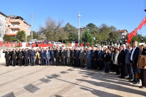 Protokol üyelerinin anıta çelenk sunumunun ardından saygı duruşunda bulunuldu, İstiklal Marşı okundu.