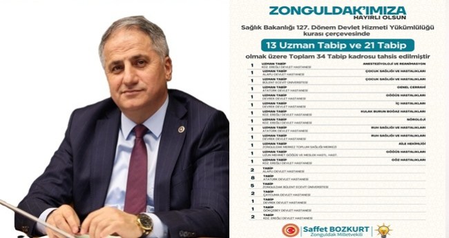 Saffet Bozkurt, '' Zonguldak'ımıza 34 Tabip kadrosu tahsis edilmiştir. ''
