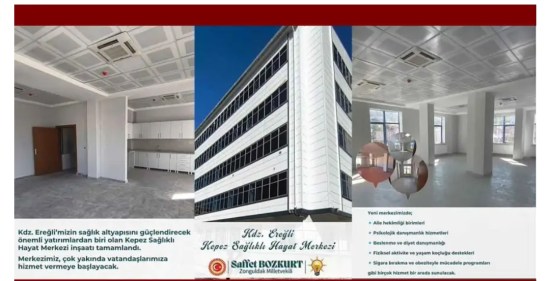Konu ile ilgili olarak açıklamada bulunan AK Parti Zonguldak Milletvekili Saffet Bozkurt “Ereğli’mizin sağlık altyapısını güçlendirecek önemli yatırımlardan biri olan Kepez Sağlıklı Hayat Merkezi inşaatı tamamlandı. Merkezimiz, çok yakında vatandaşlarımıza hizmet vermeye başlayacak.