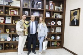 "Dünya Doğal Vücut Geliştirme Federasyonu’nun (WNBF), Ukrayna’da düzenlemiş olduğu yarışmada tüm sikletlerin şampiyonlarını eleyerek; ‘Şampiyonlar Şampiyonu’ (Overal) unvanına sahip Ereğlili evladımız Ömer Faruk Darçın ve eşi Gözde Darçın’a nazik ziyareti için teşekkür ediyorum.