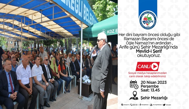 Kdz. Ereğli Belediyesi, arefe günü şehir mezarlığında mevlid-i şerif programı düzenleyecek. Başkan Halil Posbıyık, Perşembe günü saat 13.45’de düzenlenecek mevlit programına halkı davet etti. Mevlit programı sonrasında 25 bin çiçek fidesi dağıtılacak.